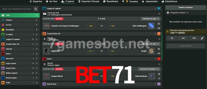 O bet71 oferece uma grande seleção de opções de apostas em e-sports com probabilidades competitivas